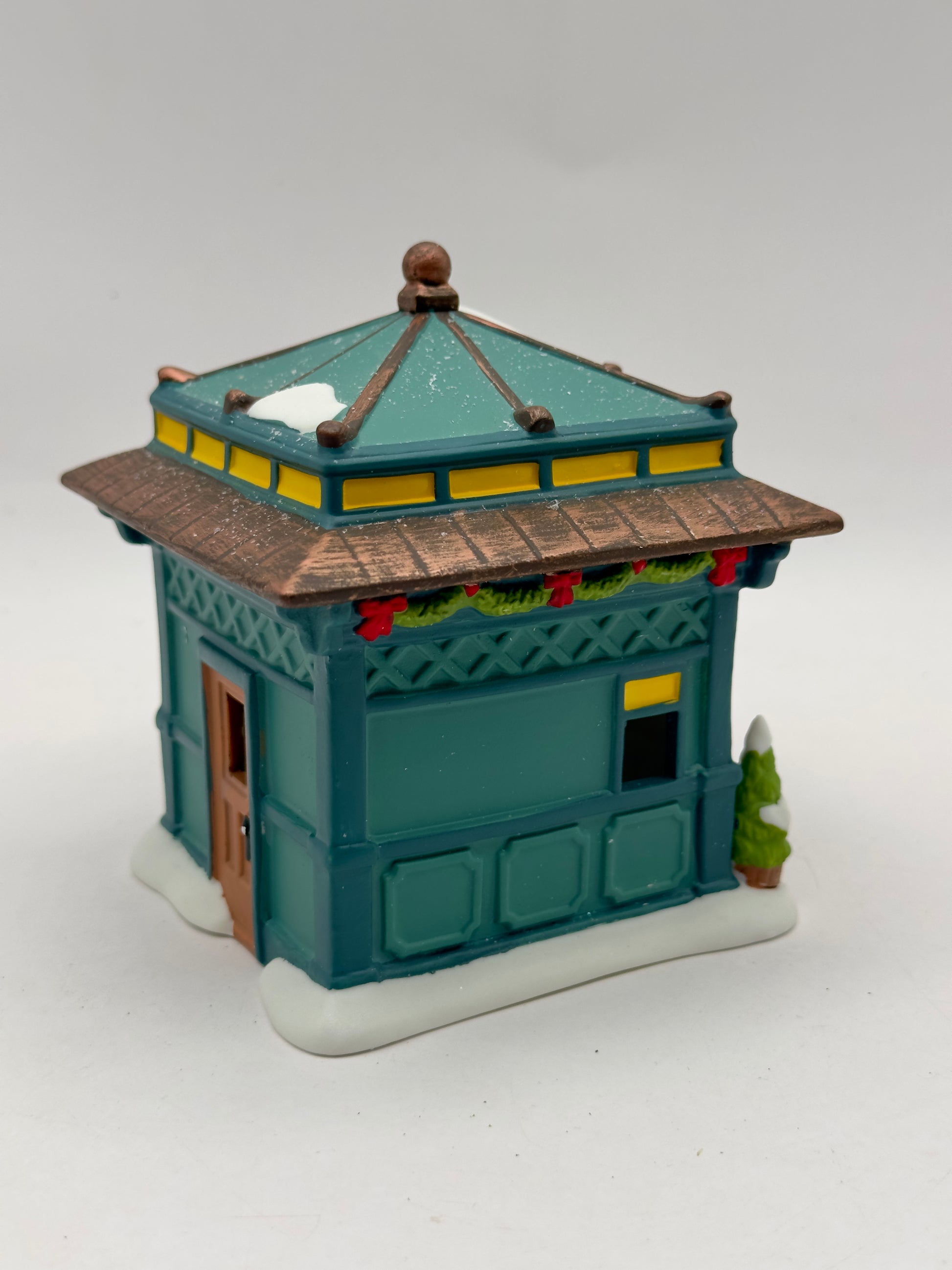 A festive addition from the Village Accessories line, the Classic Christmas Kiosk is styled with holiday wreaths, garlands, and a glowing lantern. Whether it's cocoa, warm blankets, or seasonal cheer, this charming stand adds cozy charm to any village scene.