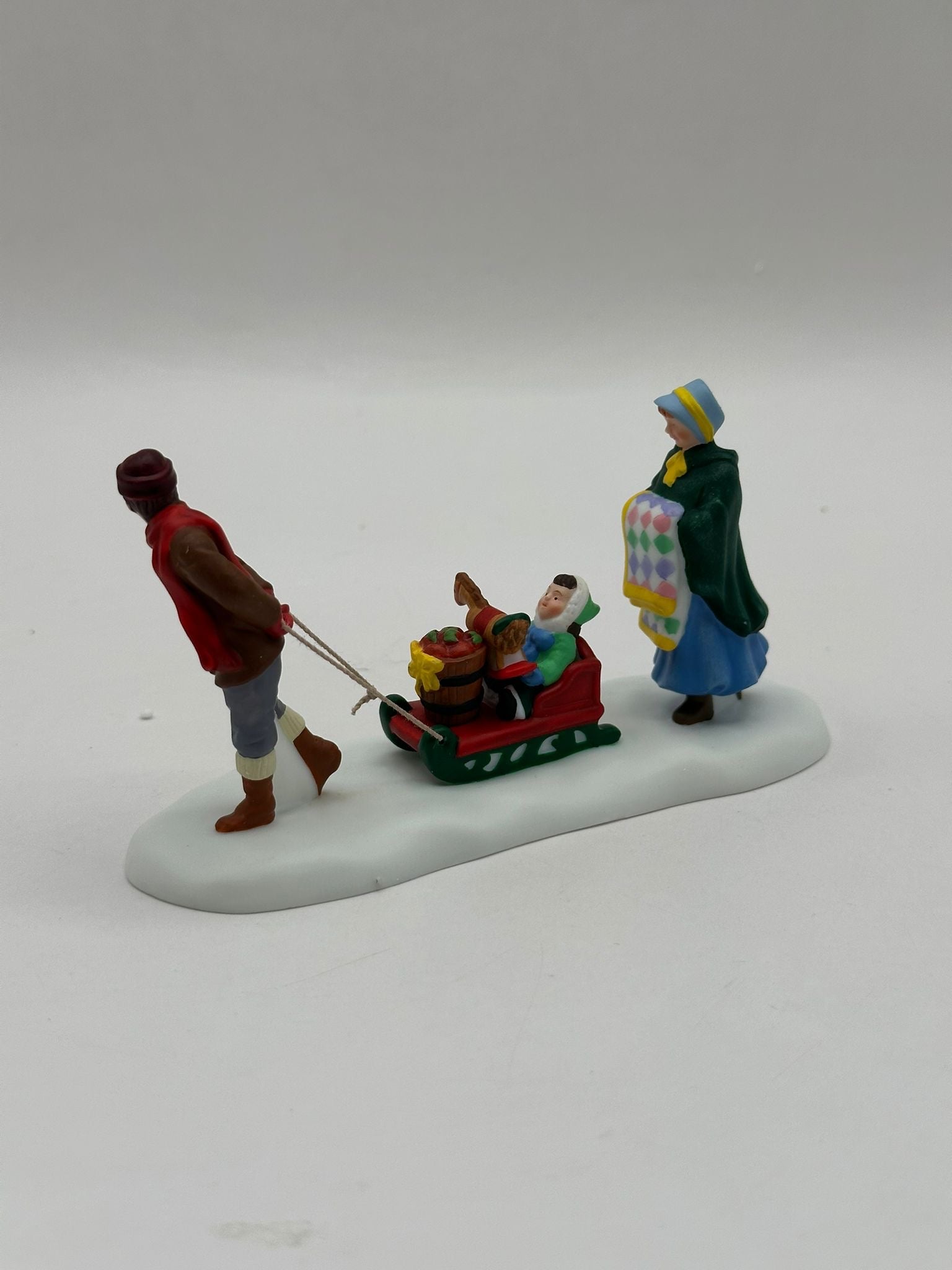 Delivering the Christmas Spirit captures a festive moment as holiday cheer is delivered through the snowy streets. This lively scene reflects the excitement and generosity of the season and fits perfectly along a busy village street or outside a shop during the Christmas rush.