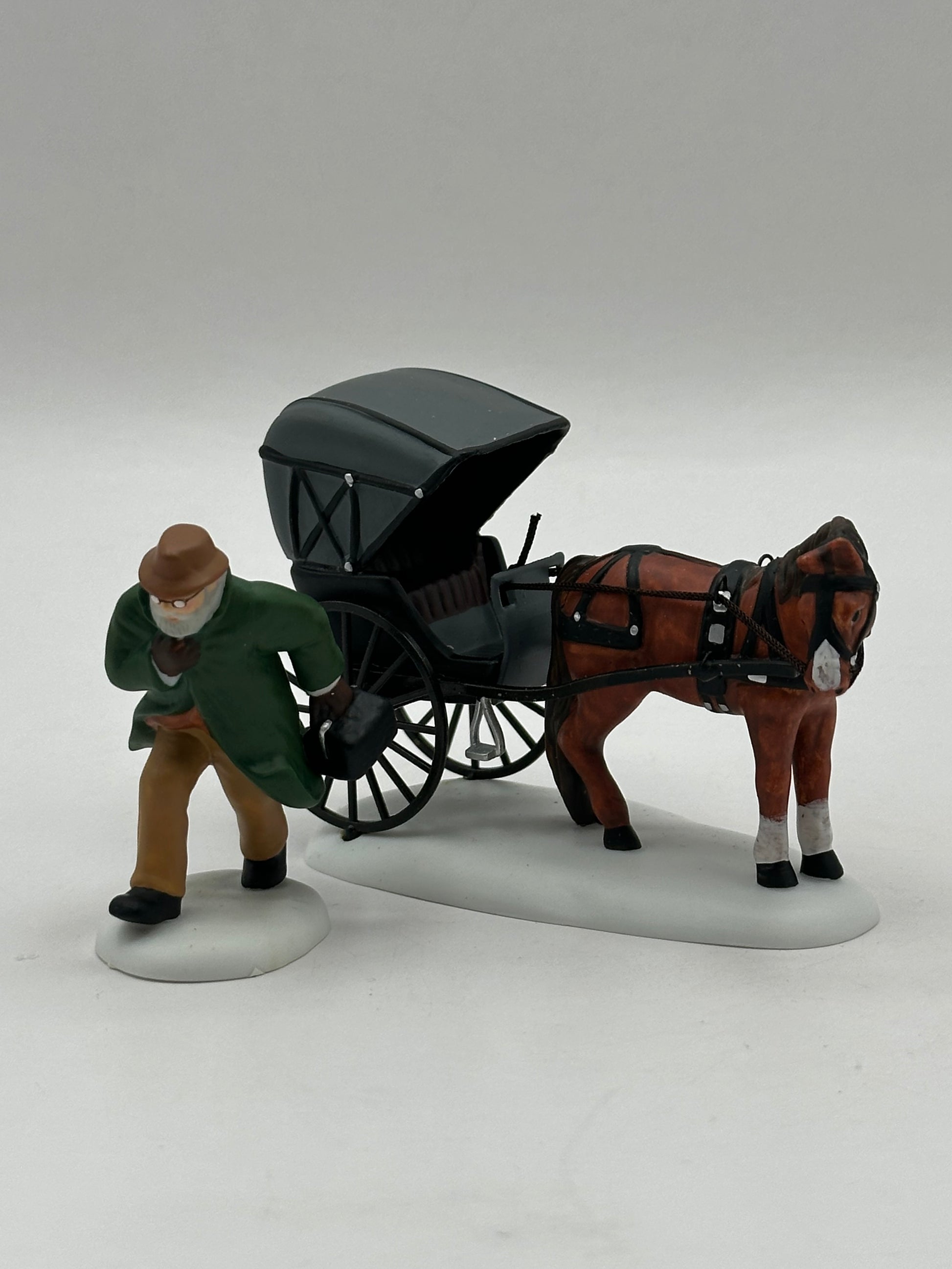 Doctor’s House Call captures a moment of care and dedication in a small New England town. The village doctor arrives by horse and carriage, making his rounds with his medical bag in hand.