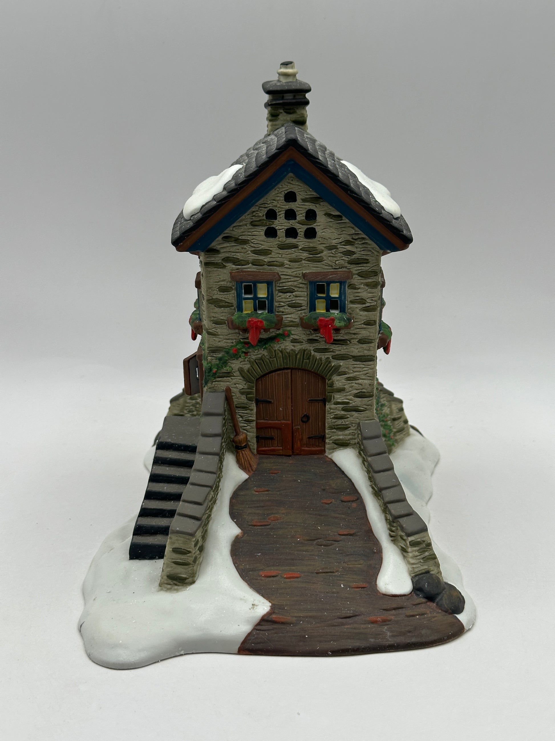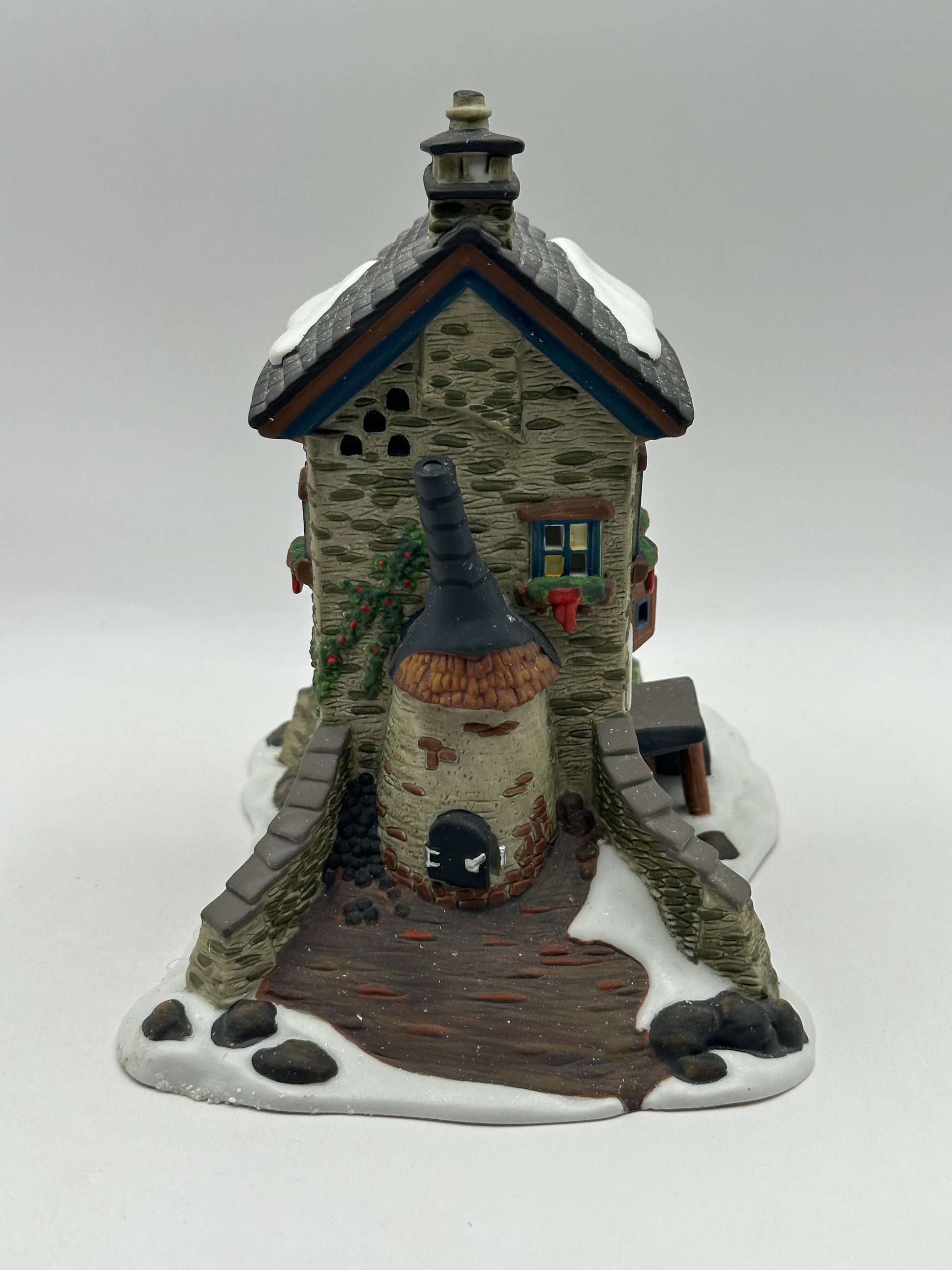 A charming industrial cottage from Department 56’s Dickens’ Village, The Maltings features detailed stone‑effect brickwork, a pitched roof with chimney, ivy‑clad walls, and a distinctive stone archway at its base. Warmly lit from within, this lighted porcelain piece evokes the bustle of Victorian manufacturing and adds authentic working‑class atmosphere to any holiday street scene.