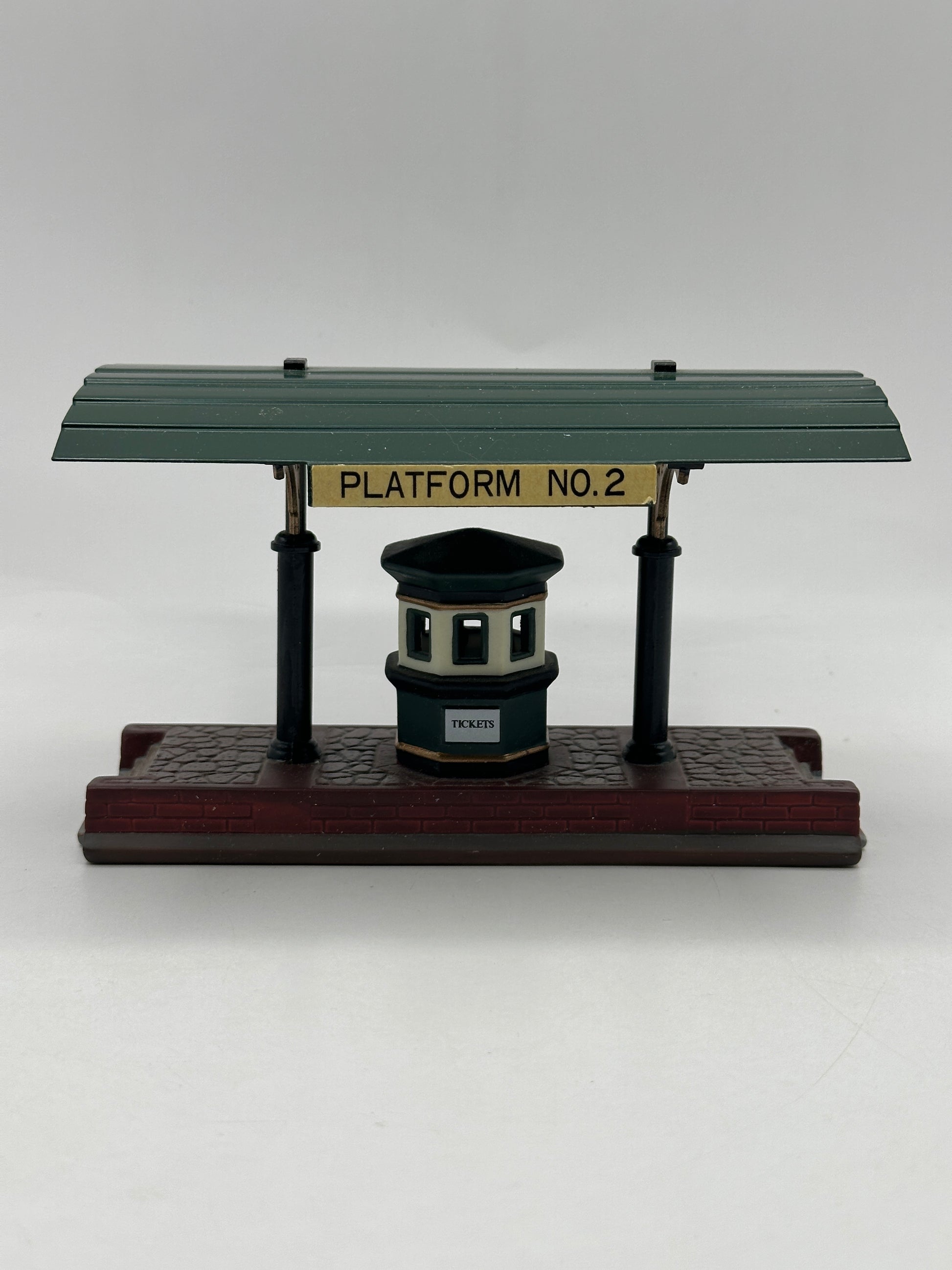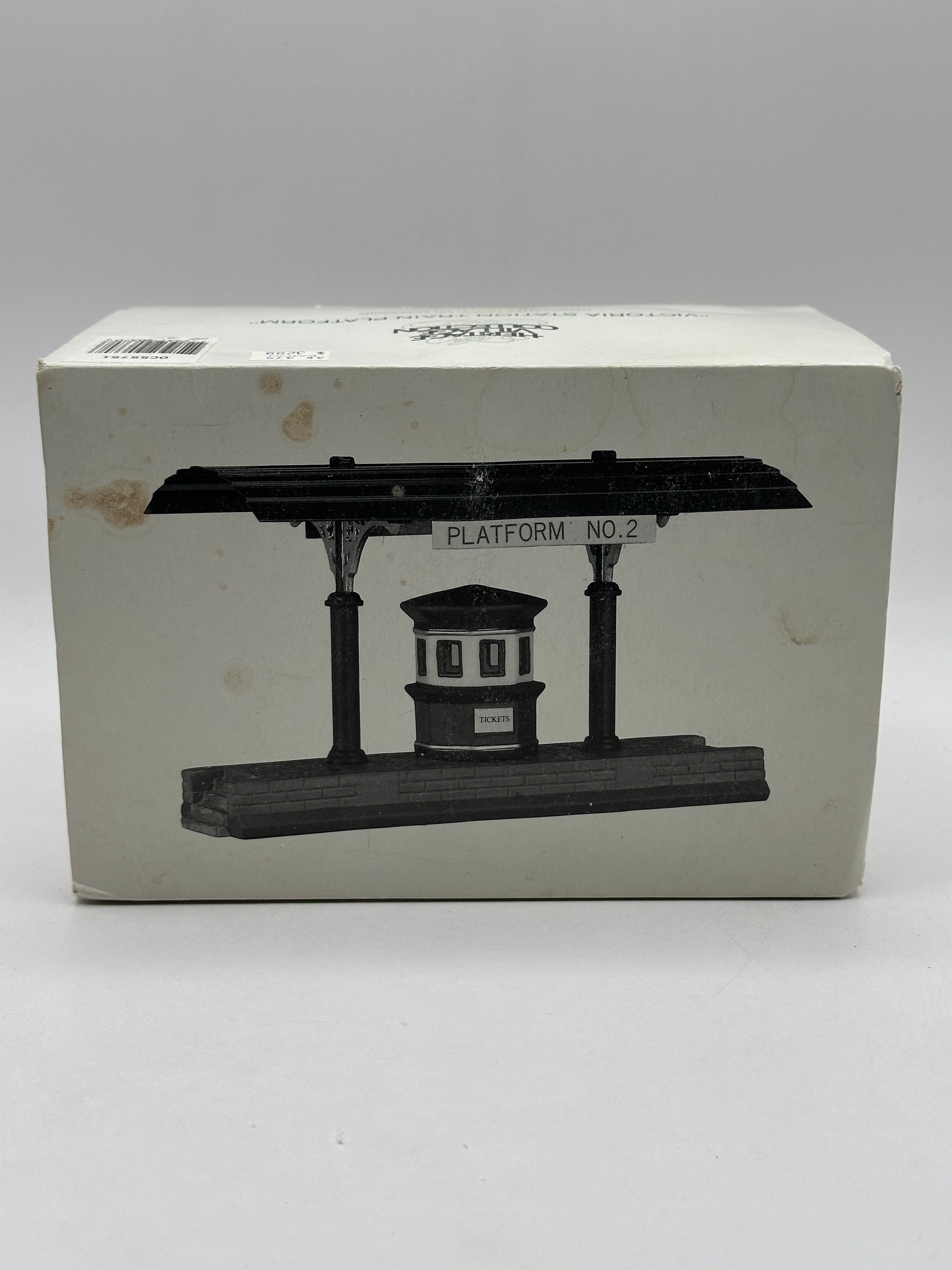 The Victoria Station Train Platform is a classic accessory designed to complement the Dickens’ Village series, adding life and activity to your railway scenes. With its green canopy, cobblestone platform, and central ticket booth, this piece captures the charm of a bustling Victorian-era station.