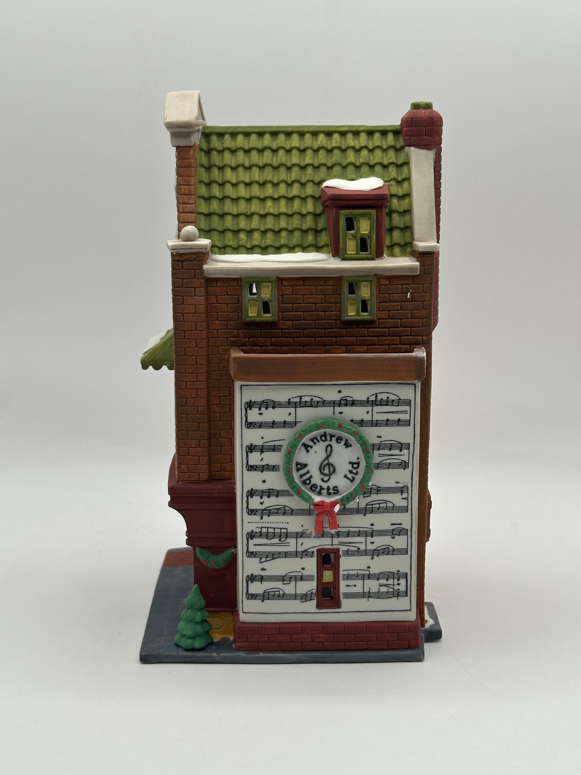 Celebrate the sounds of the season with the Music Emporium, a beautifully detailed shop from the Christmas in the City series. Featuring a tall brick facade, decorative wreaths, and a classic clock above the entrance, this piece captures the charm of a bustling city music store. Perfect for adding a melodic touch to your holiday village display!