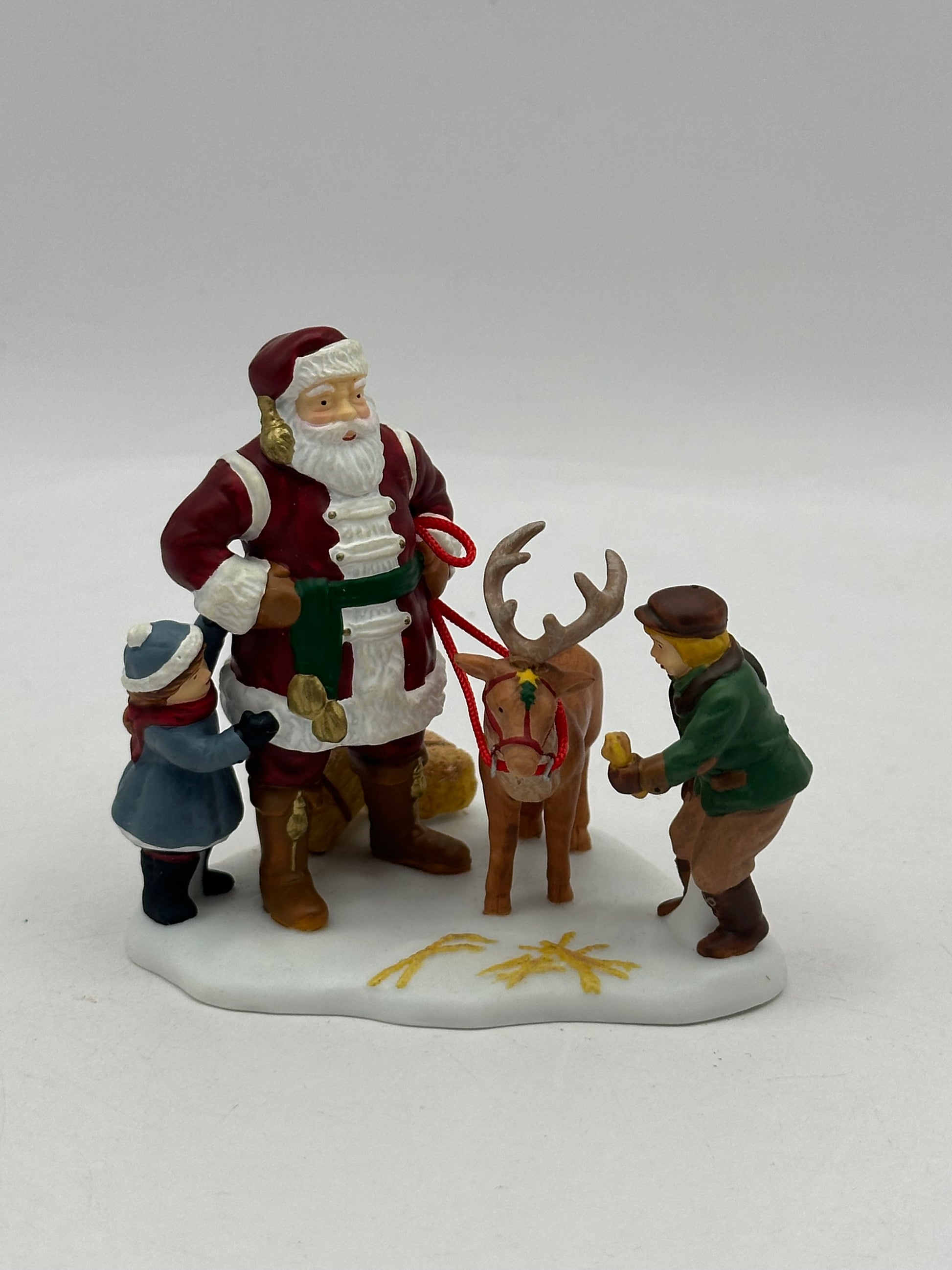 Santa takes a moment to greet two delighted children and their reindeer companion in this festive figure set. With warm details and cheerful expressions, it perfectly captures the magic of meeting Santa up close. A wonderful addition to bring holiday spirit and joy to your Christmas in the City village!