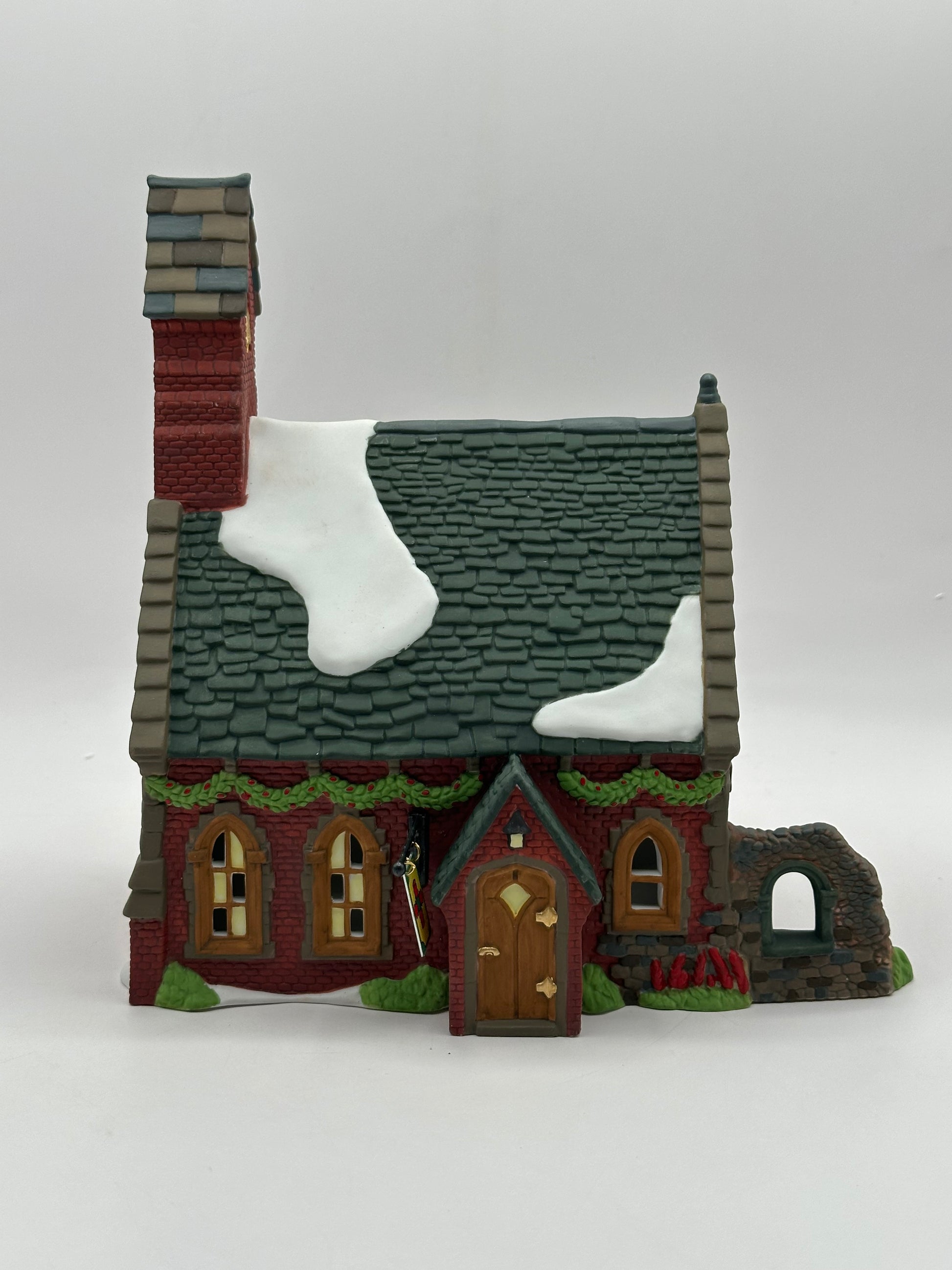 A peaceful place of reflection and community, Dudden Cross Church brings timeless charm to your Dickens Village. With its red brick exterior, arched stained-glass windows, snow-covered roof, and festive garlands, this classic English chapel captures the spirit of the season. A meaningful addition that adds warmth and tradition to your holiday display.