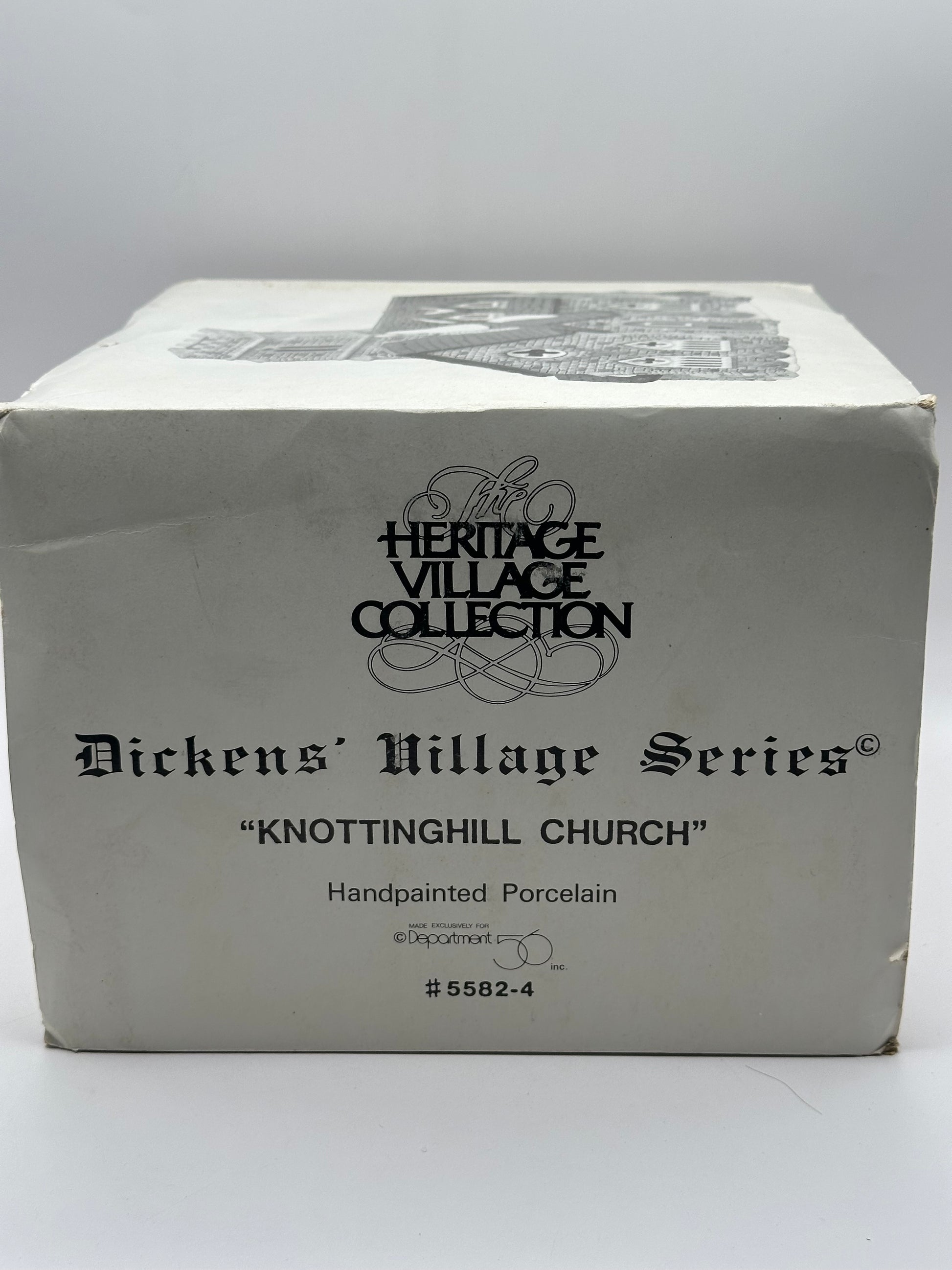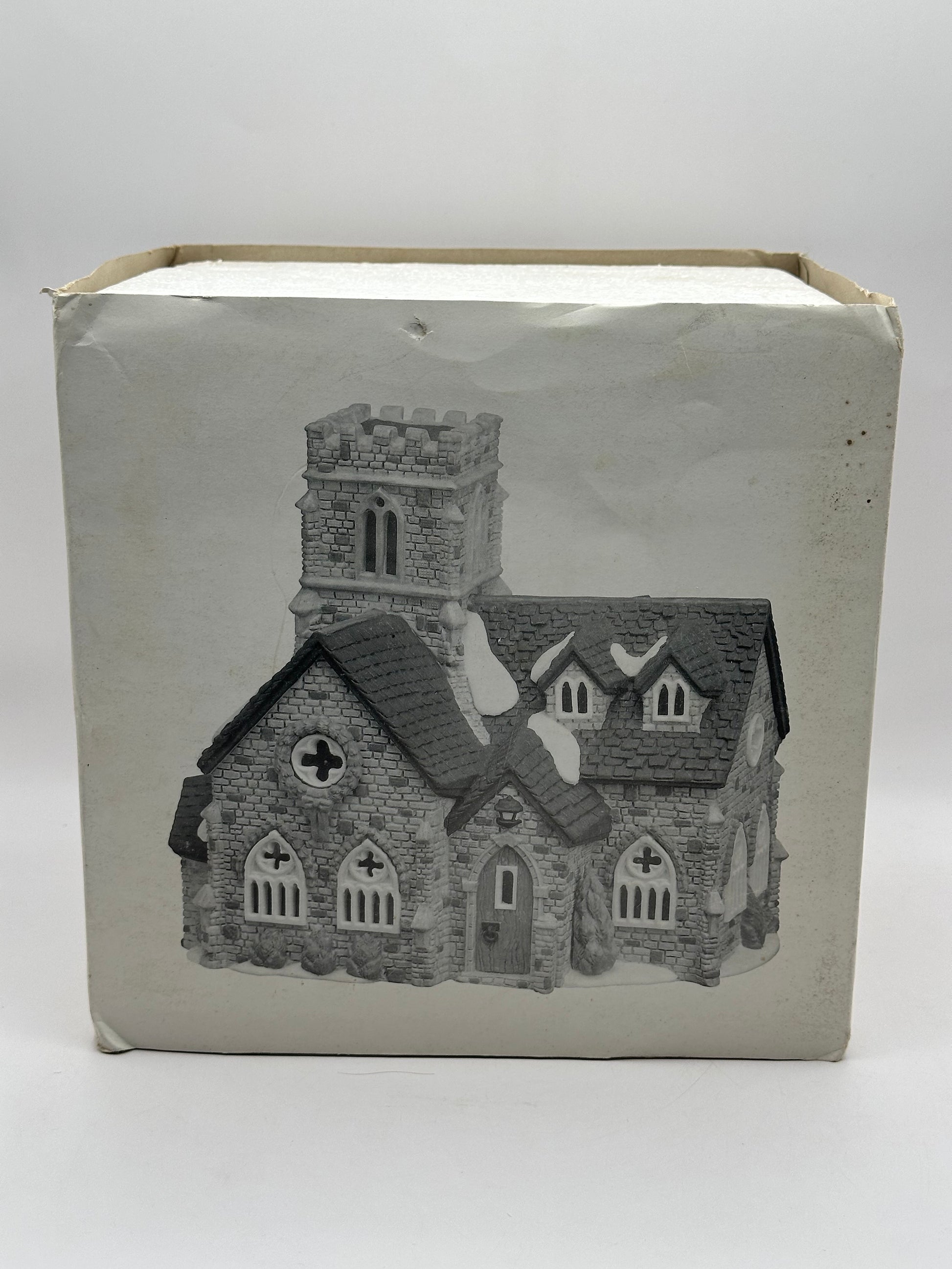 Bring timeless beauty and tradition to your Dickens’ Village with Knottinghill Church. This stunning porcelain piece features classic stonework, arched stained-glass windows, a tall bell tower, and festive holiday wreaths. With its warm glow shining through the detailed windows, Knottinghill Church creates a peaceful and elegant centerpiece for any village display, celebrating the heart of the community during the holiday season.