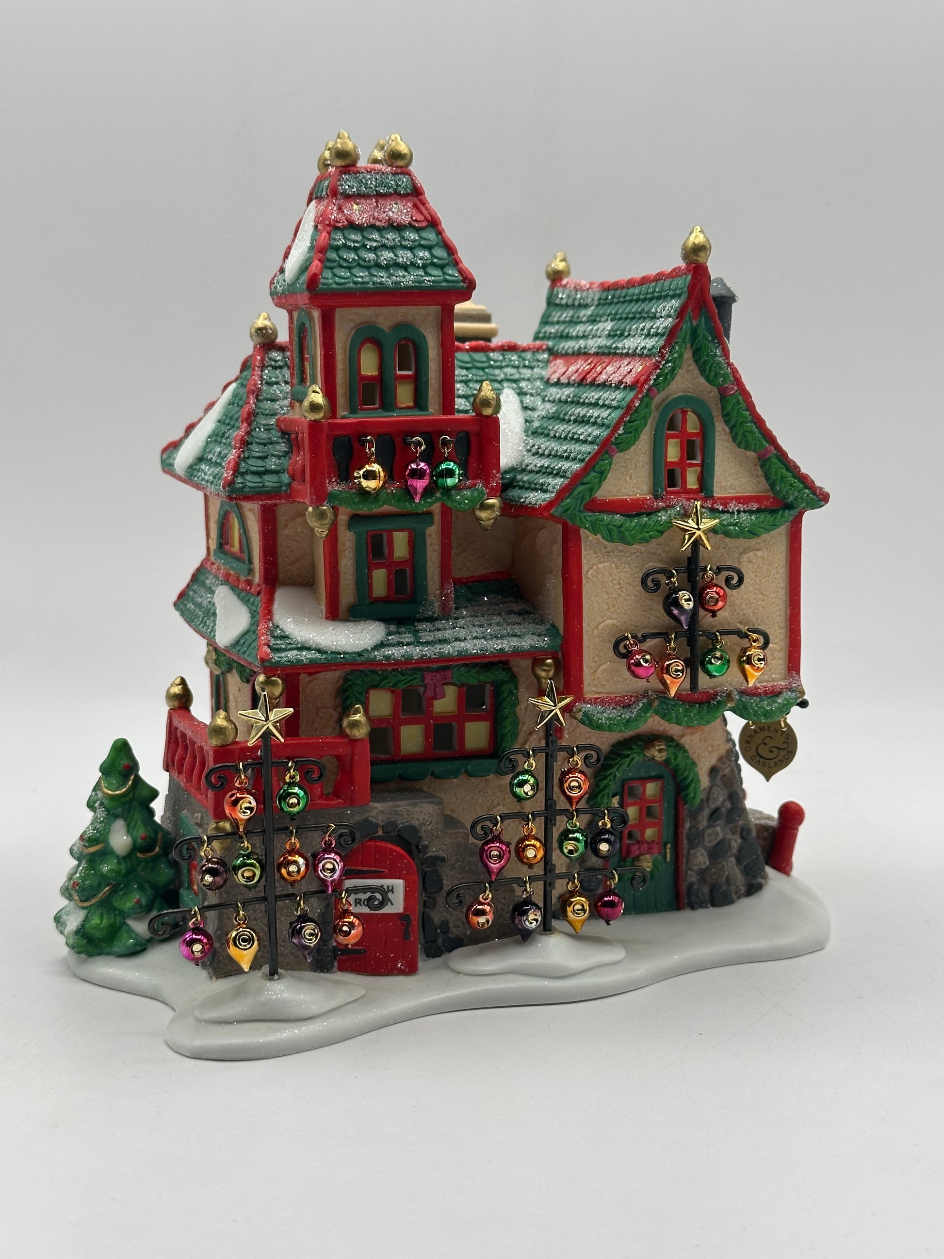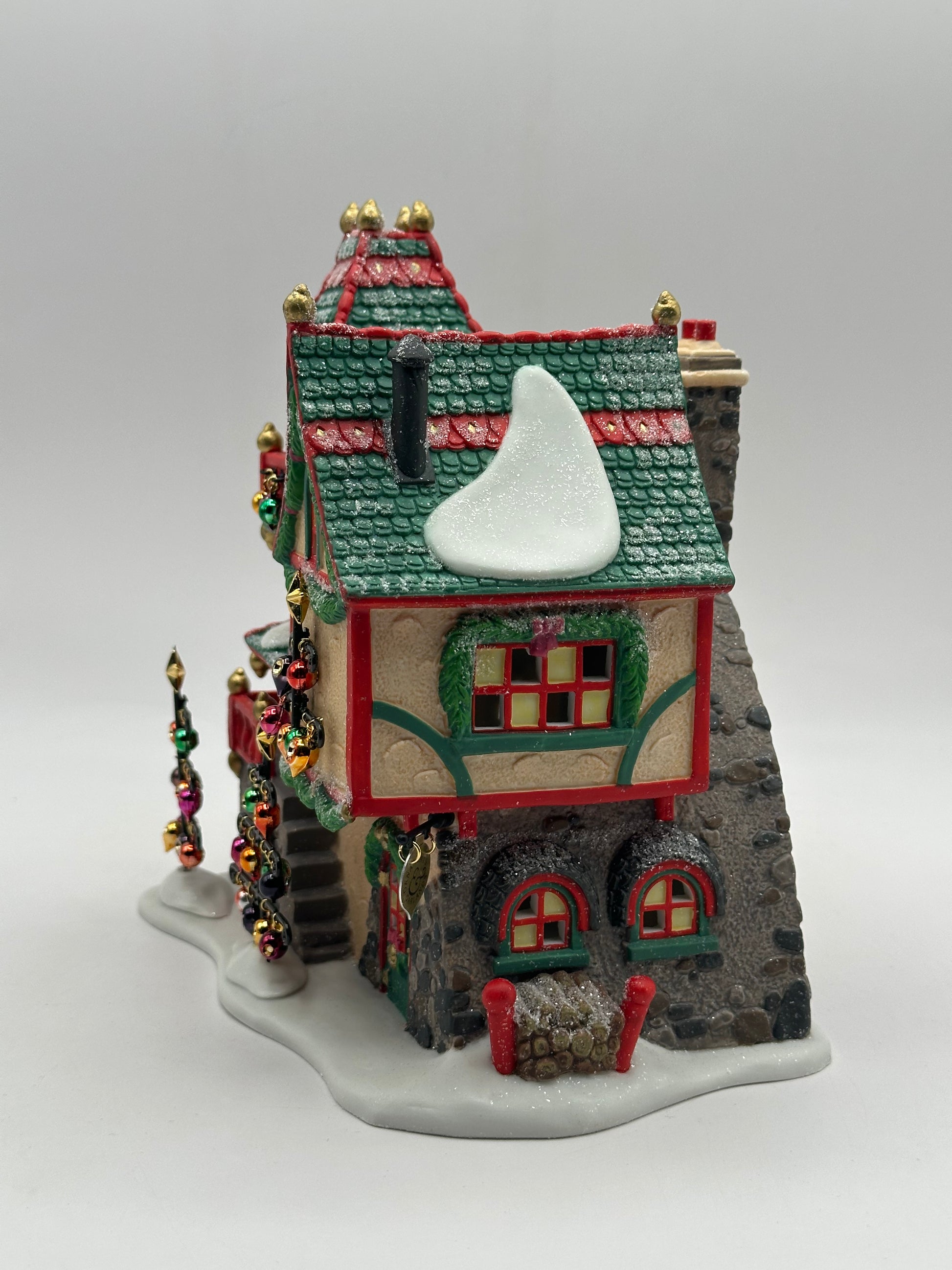 North Pole Glass Ornament Works is where skilled elf artisans handcraft the twinkling treasures that deck the halls around the world. From classic globes to whimsical shapes, each ornament is blown with care and trimmed with holiday cheer. It’s the shimmering heart of the season in the Department 56 North Pole Village!
