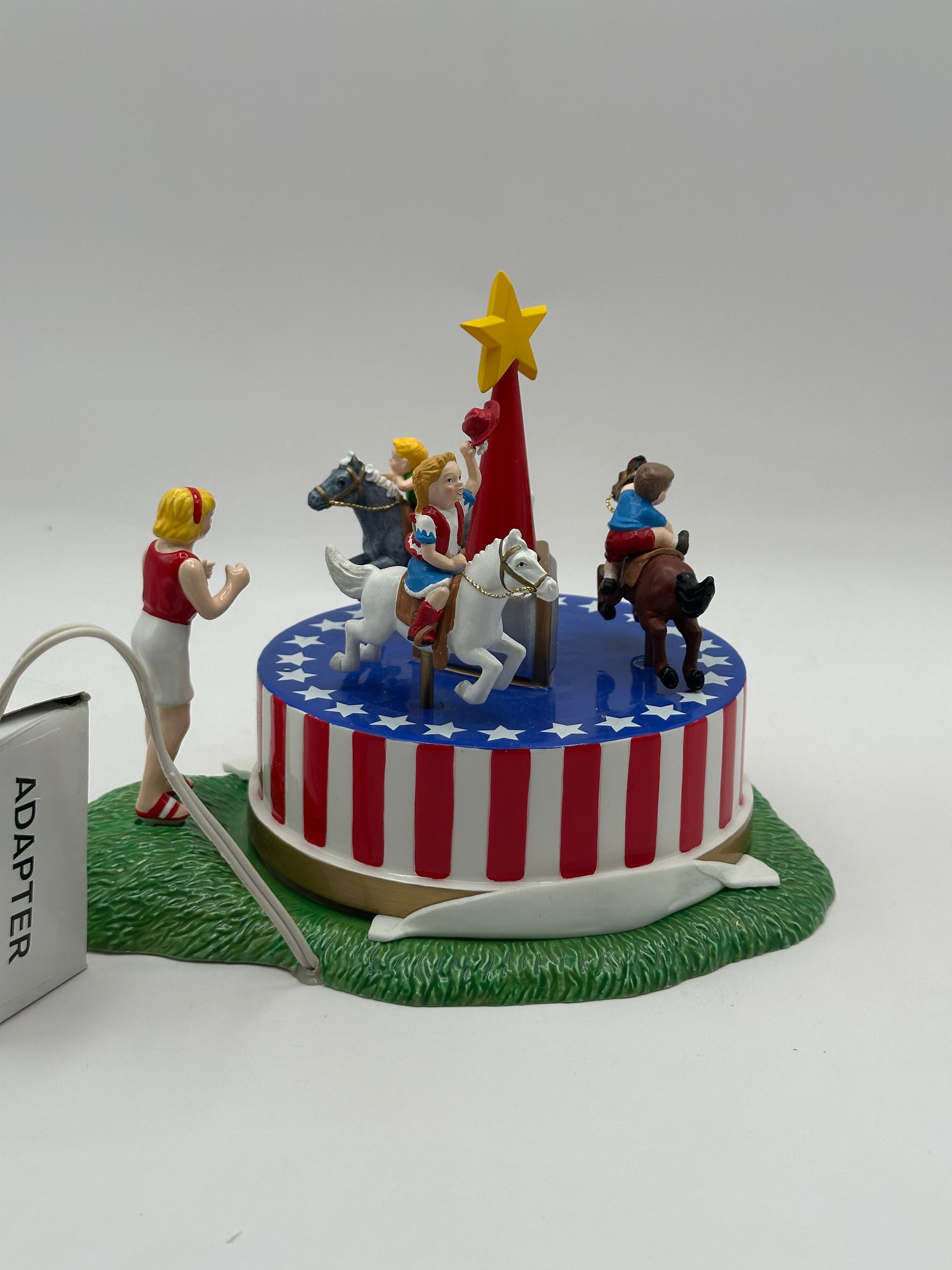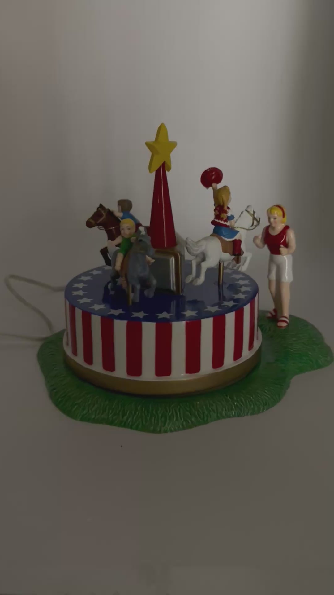 Item is animated. The merry-go-round spins. Item has been tested and it works. The star flashes.Â
