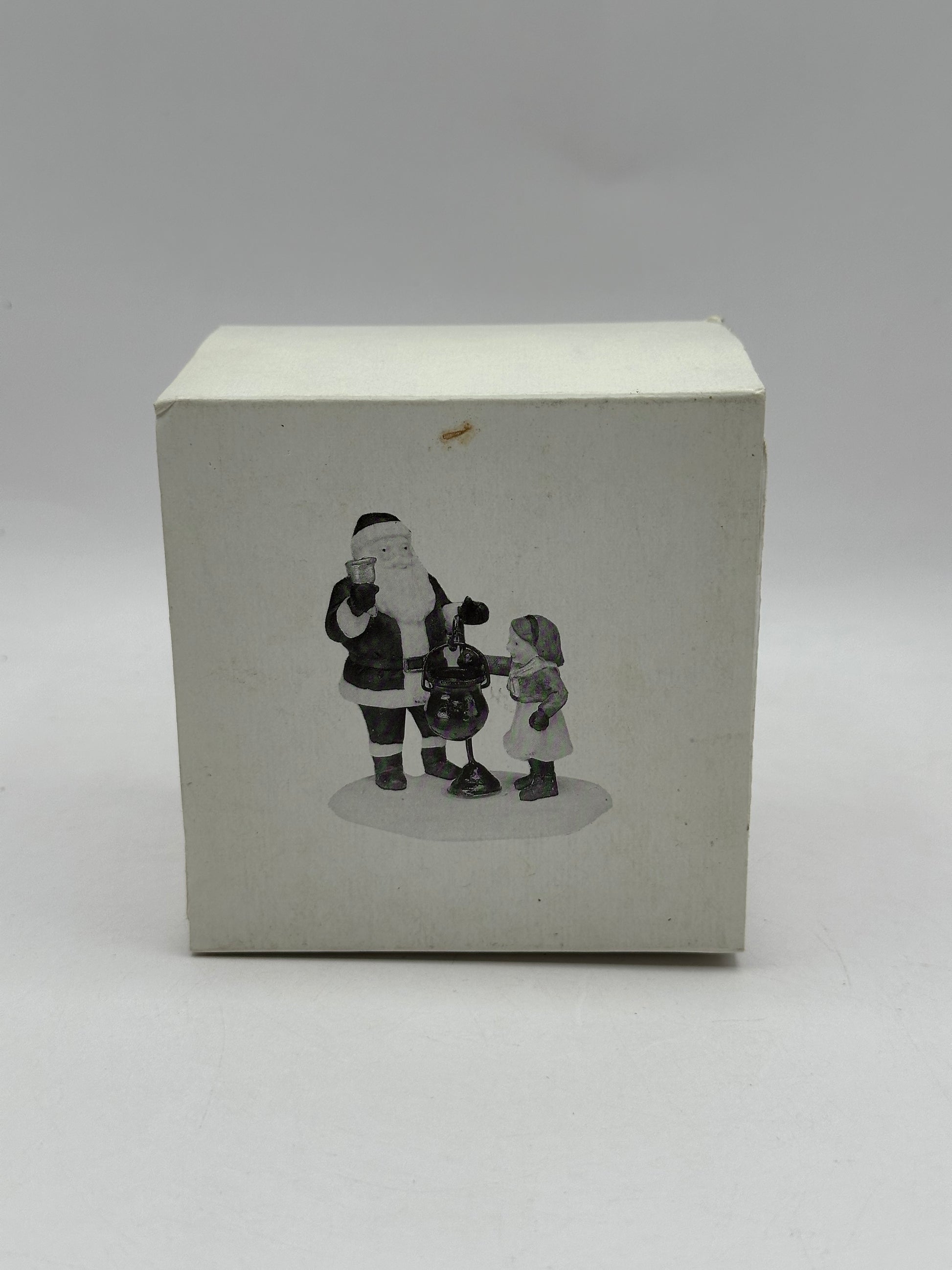 Capturing the spirit of holiday giving, this delightful figure set features Santa ringing his bell beside a donation kettle as a young girl contributes her coin with a smile. A heartwarming addition that embodies the generosity and joy of the season, perfect for enhancing your Christmas in the City display.
