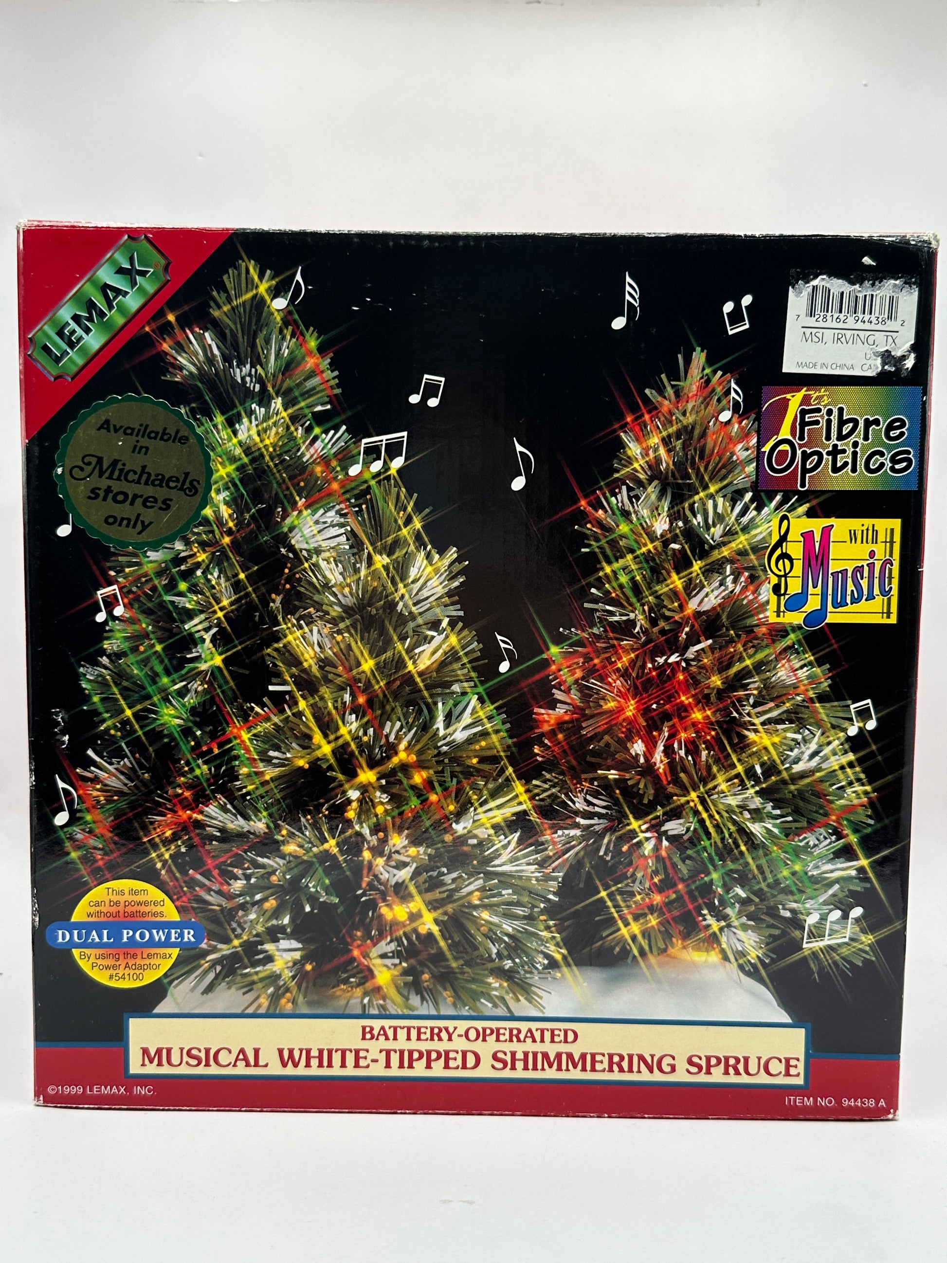 Battery operated (batteries not included) Musical White-Tipped Shimmering Spruce