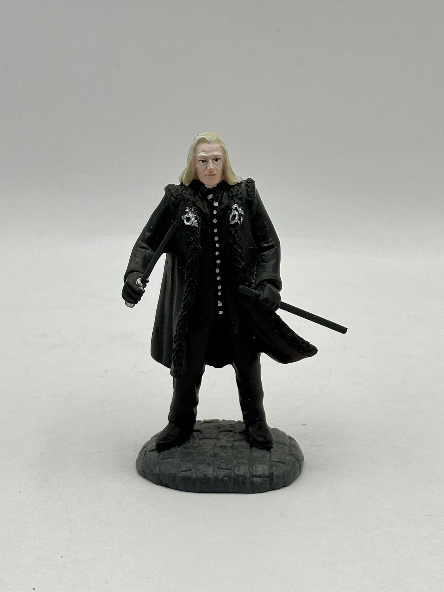 Add a touch of dark wizarding elegance to your collection with the Lucius Malfoy figurine from Department 56. This officially licensed Harry Potter collectible features intricate hand-painted details, capturing Lucius's signature long blond hair, dark cloak, and serpent-handled cane. Perfect for fans of the Slytherin house or collectors of Harry Potter figurines, this display piece brings the ominous presence of one of Voldemort’s most loyal followers into your home. Ideal for display with other Department 56 Harry Potter village pieces.
