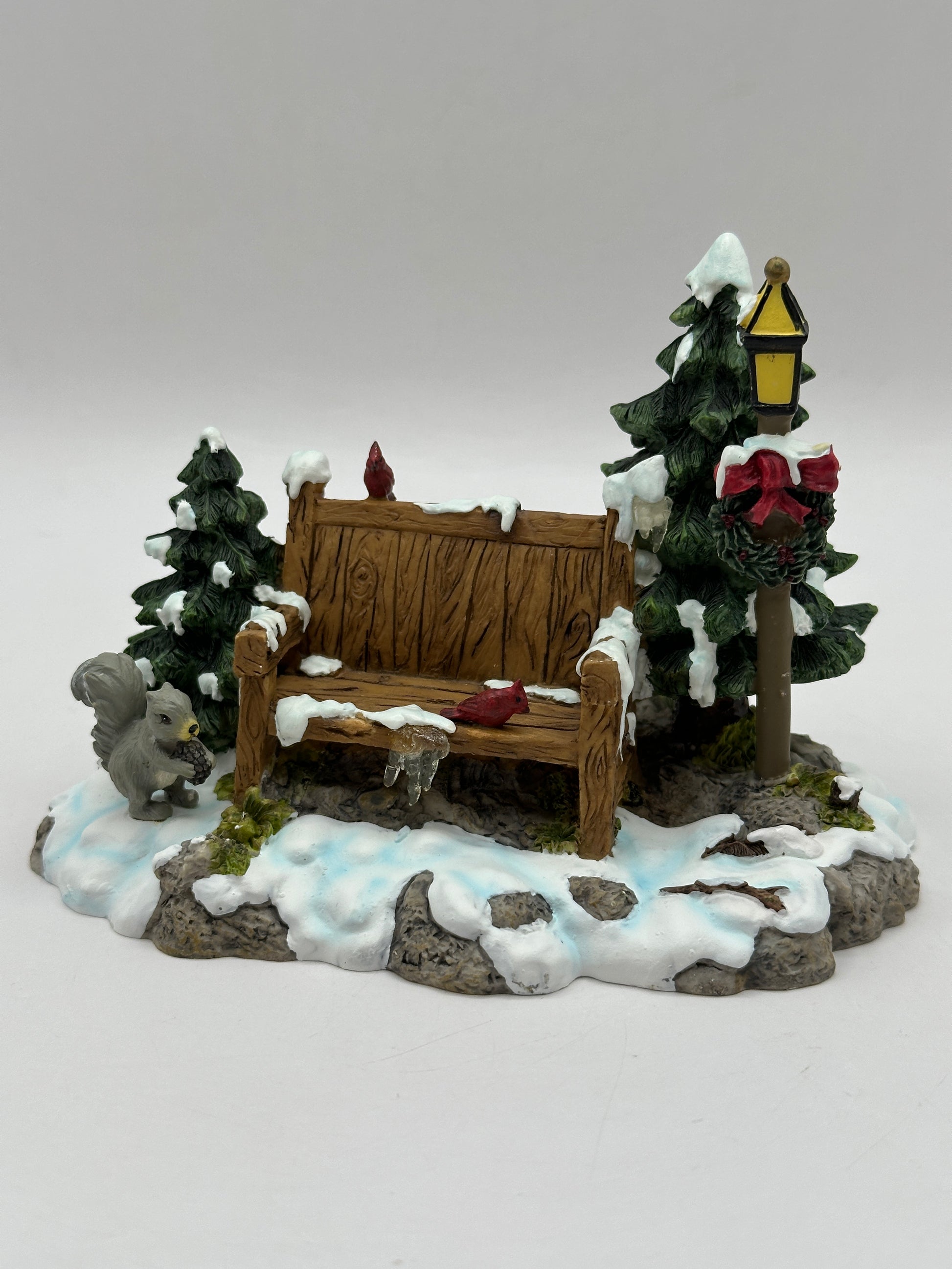 Mill Creek Park Bench offers a charming spot of rest and reflection within any village or landscape display. Styled to complement the natural beauty of the Mill Creek series, this well-crafted bench invites viewers to imagine quiet moments spent enjoying the gentle sound of flowing water or the peaceful hush of a winter afternoon.