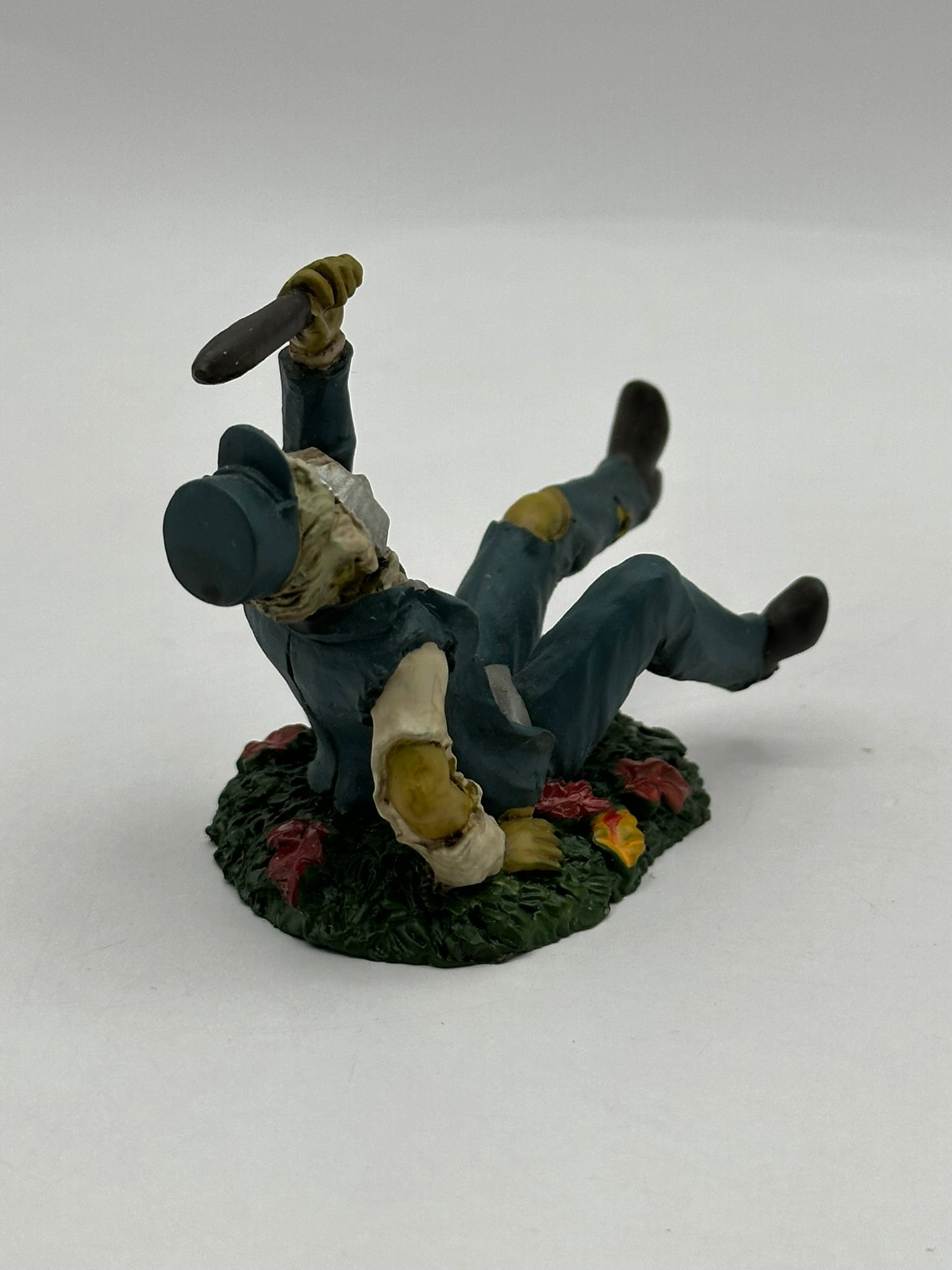 This comical scene featuring a clown who’s just taken a pie to the face and looks ready to escape the embarrassment! Mid-trip across a leafy base, he’s holding a rolling pin like a sword, caught in a moment of hilariously exaggerated surprise. Full of character and festive charm, it’s a fun accent piece that adds lighthearted storytelling to your display.