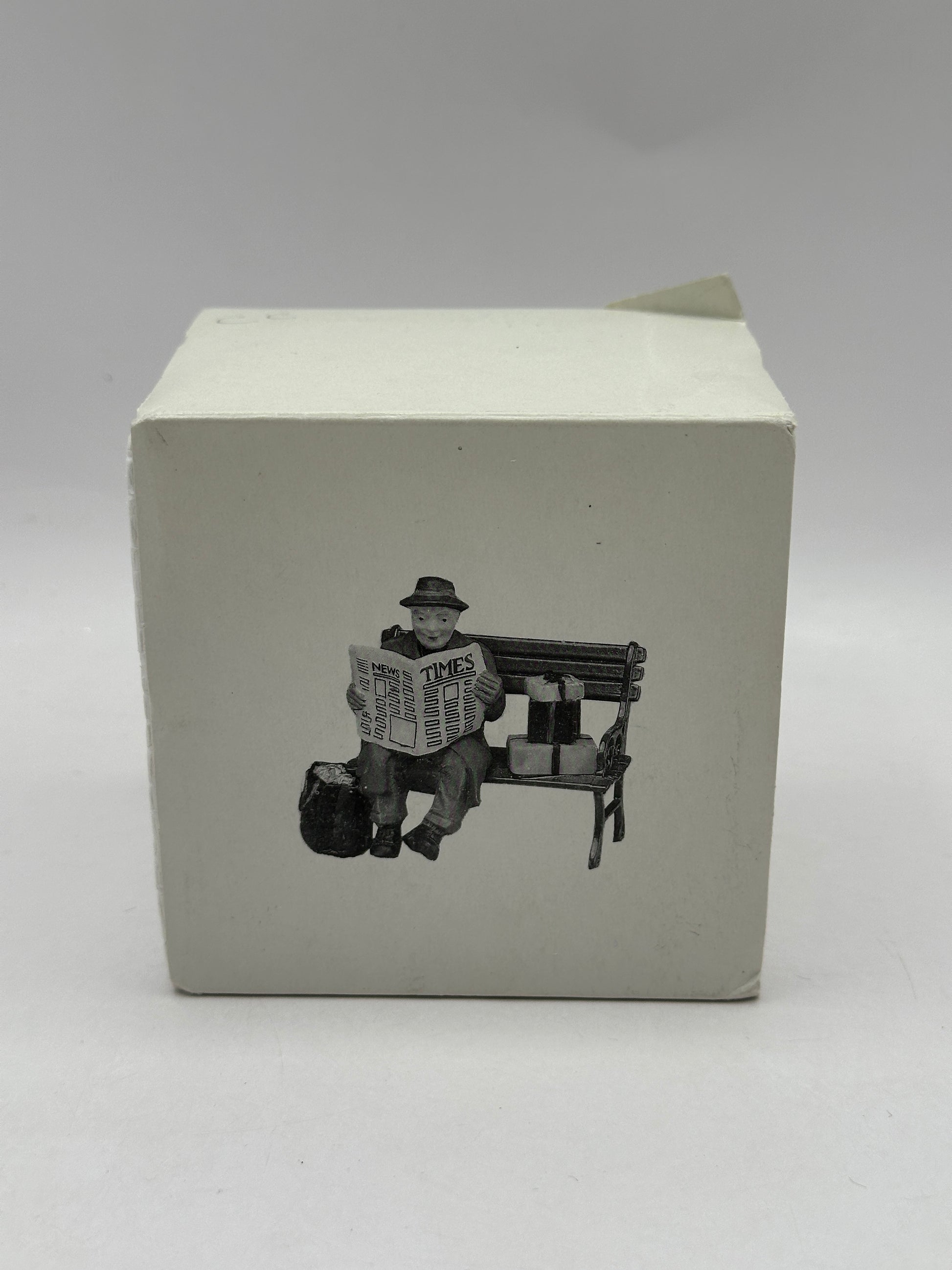 This charming accessory features a gentleman seated on a park bench, reading the newspaper with holiday gifts by his side. Dressed in classic winter attire and surrounded by festive parcels, he captures a peaceful moment amid the holiday bustle. A perfect addition to your Christmas in the City village scene.