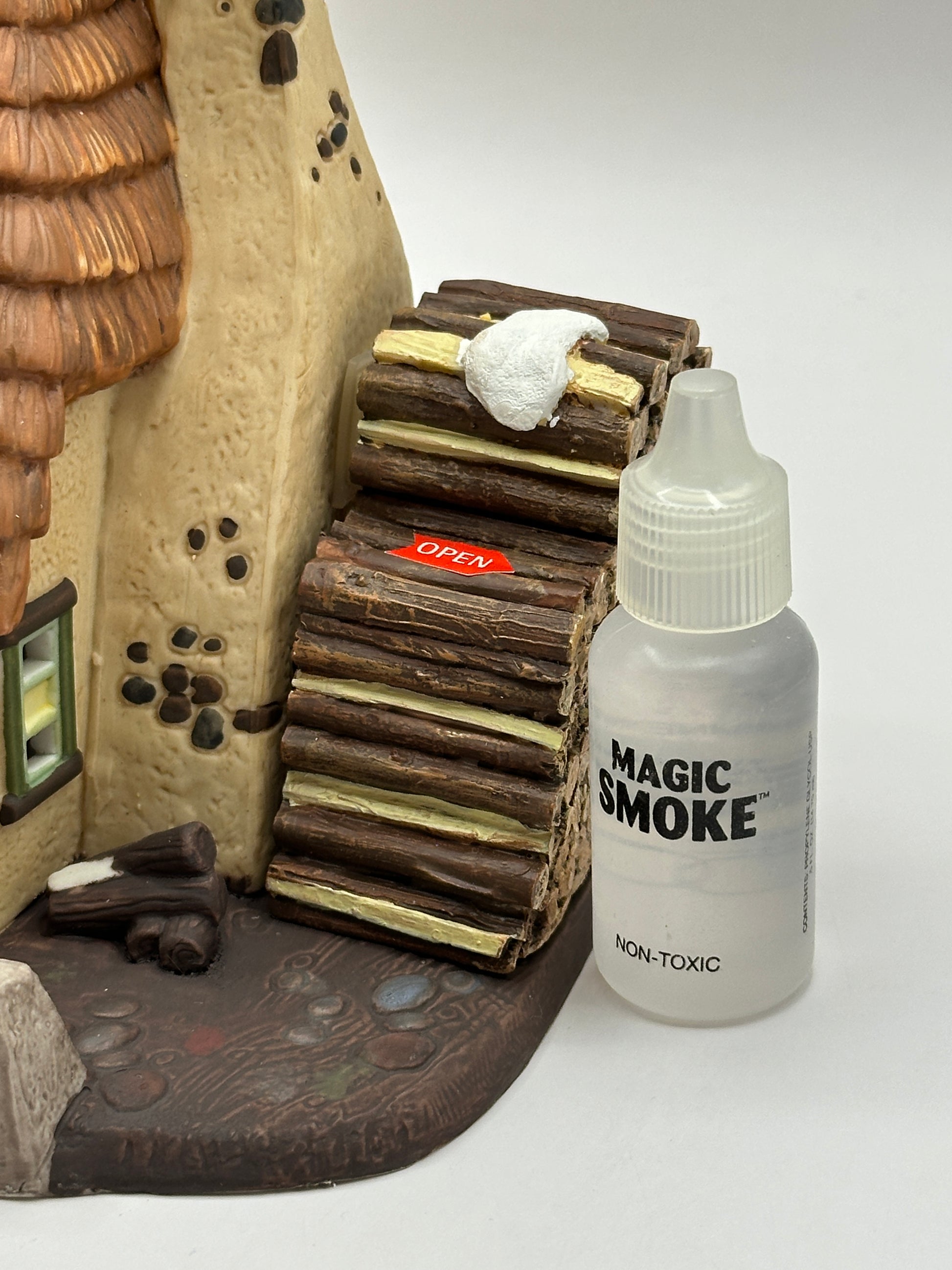 | Condition: Excellent vintage condition. Comes with original box. Includes light cord. *Smoking chimney feature has not been tested* |