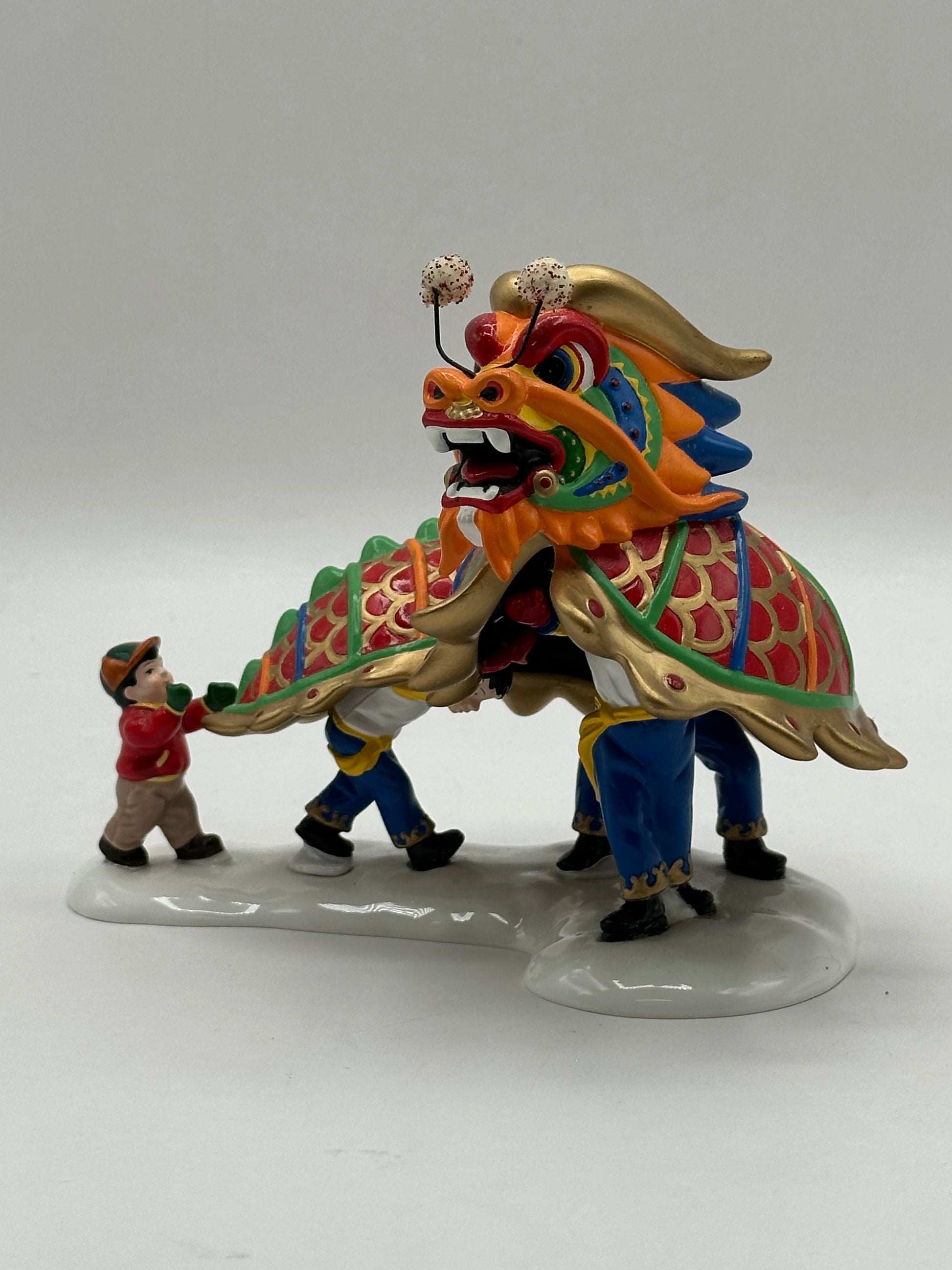 The Dragon Parade captures a vibrant and whimsical moment, featuring a long, twisting dragon weaving through the streets. Its bold colours and dynamic posture give the sense of motion and celebration.