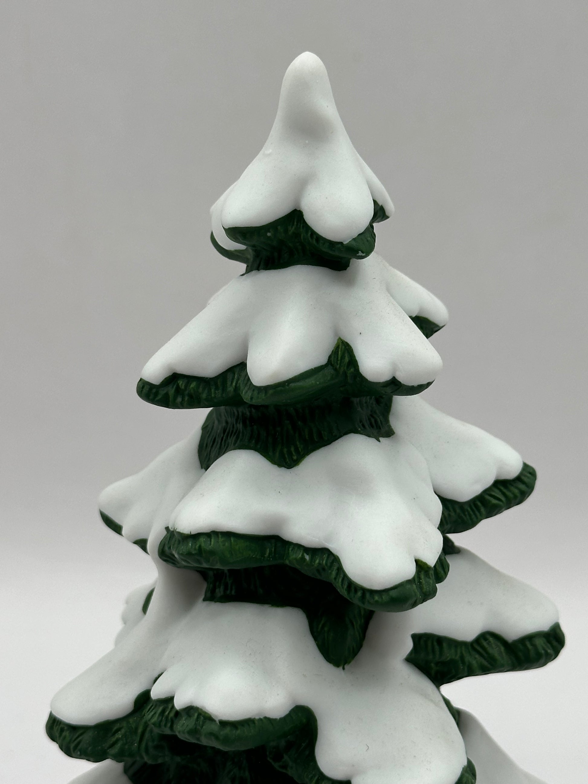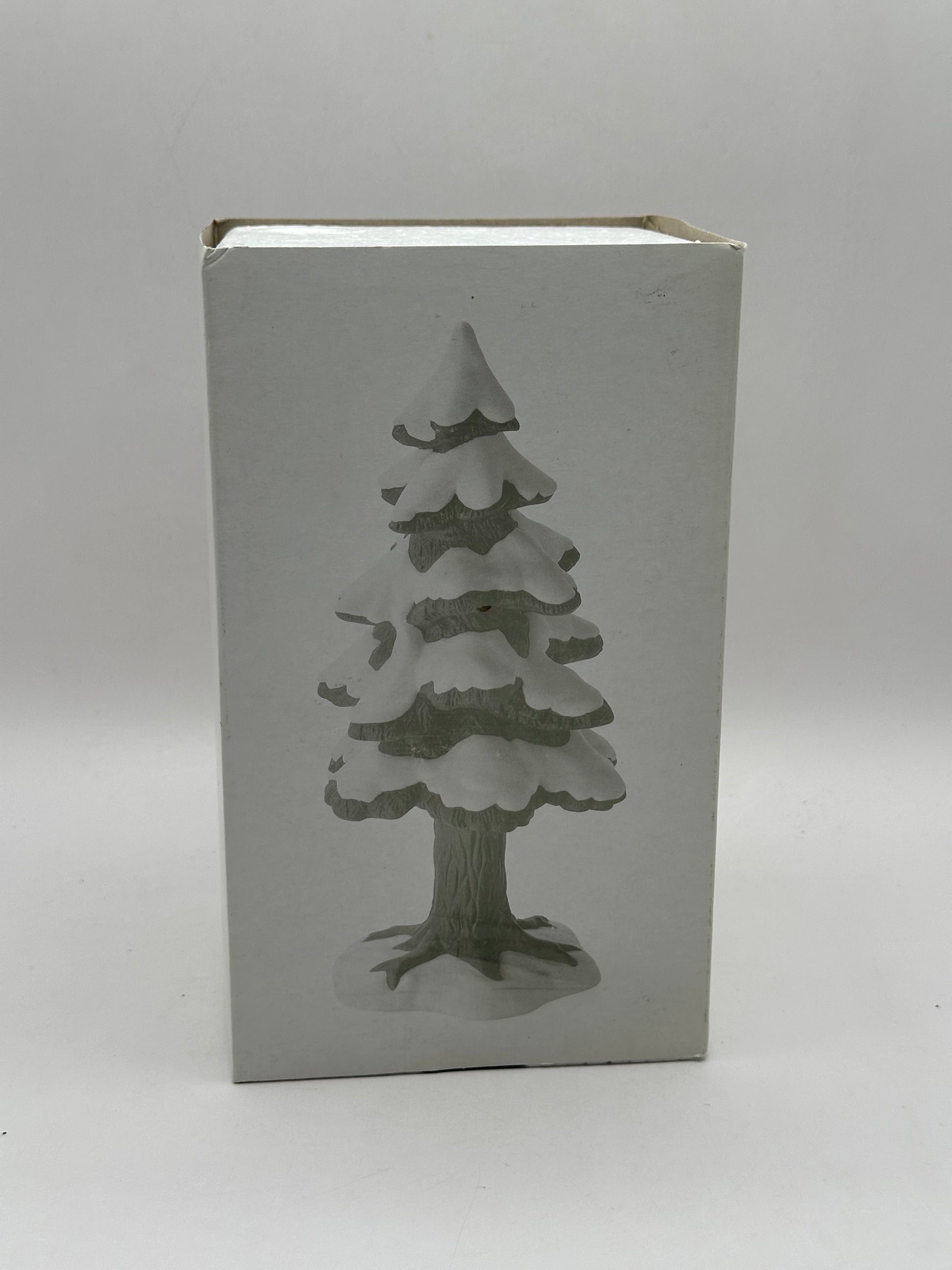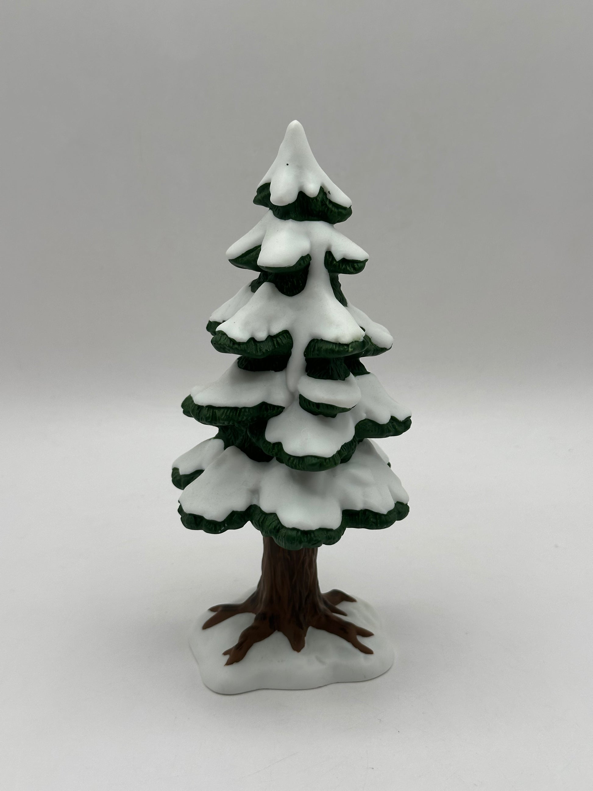 Village Porcelain Pine stands 7" tall and brings a touch of classic winter charm to any display. Its delicate porcelain detailing captures the natural texture and shape of a pine tree, making it a perfect addition to snowy village scenes or seasonal décor.