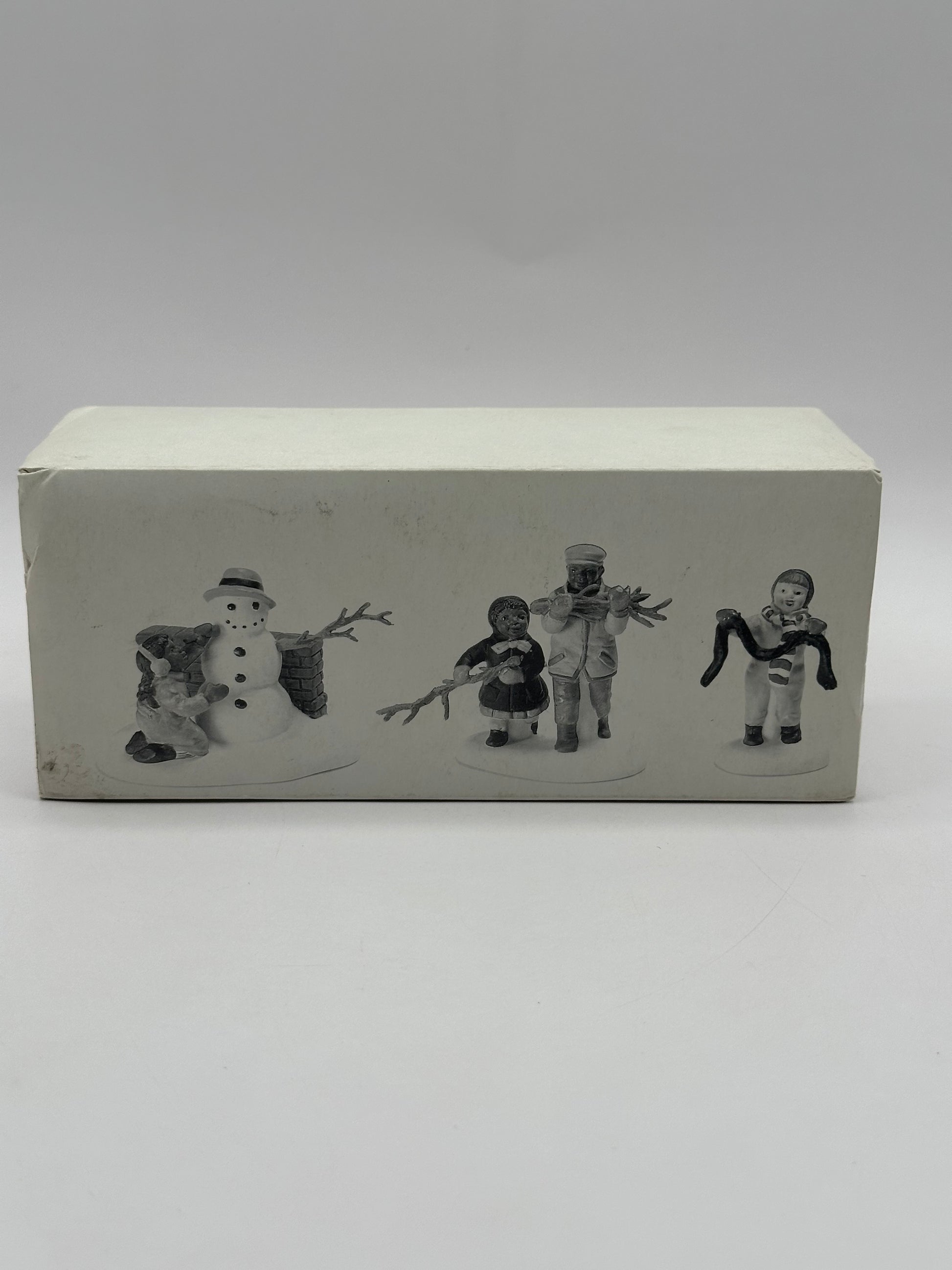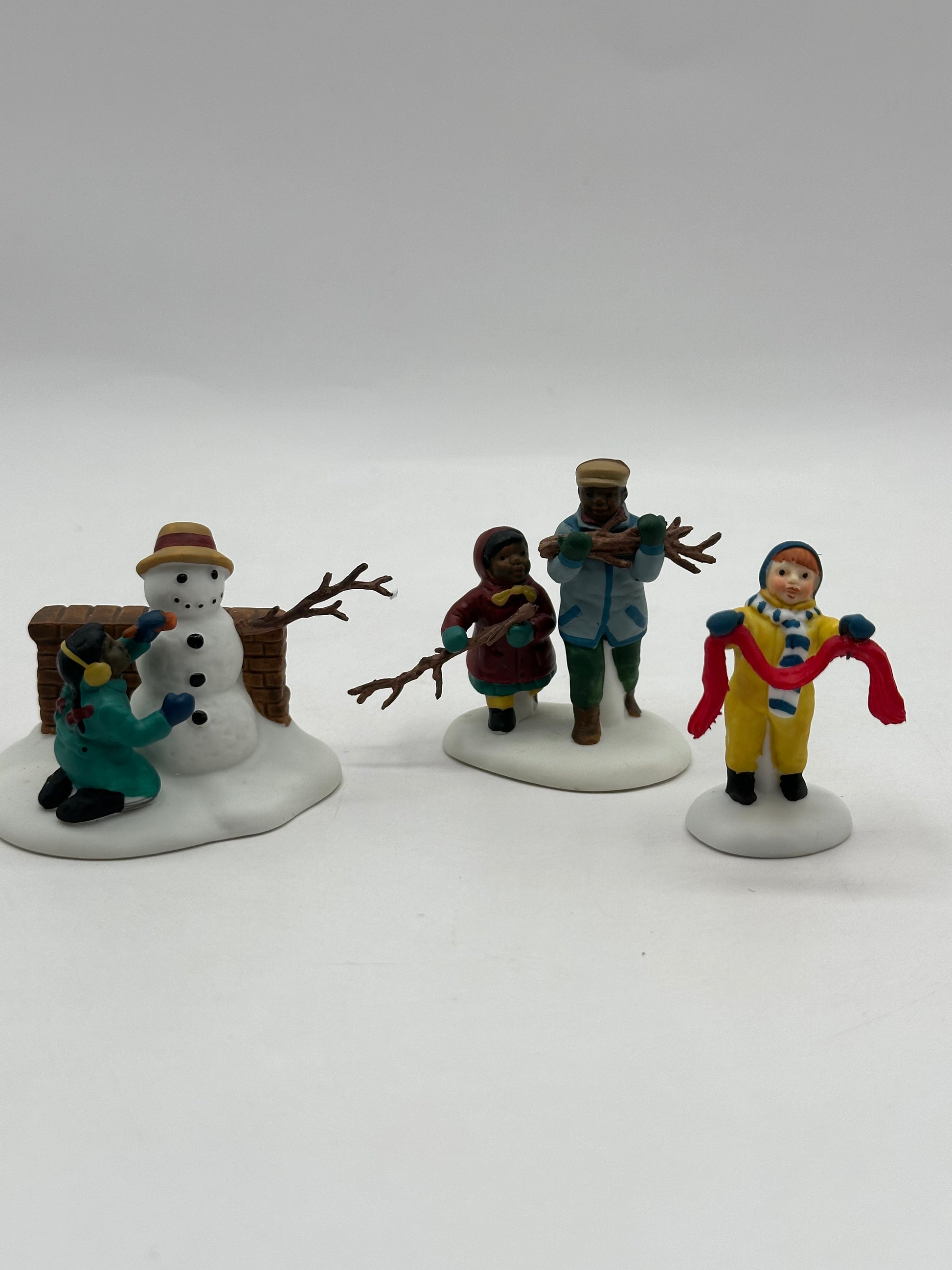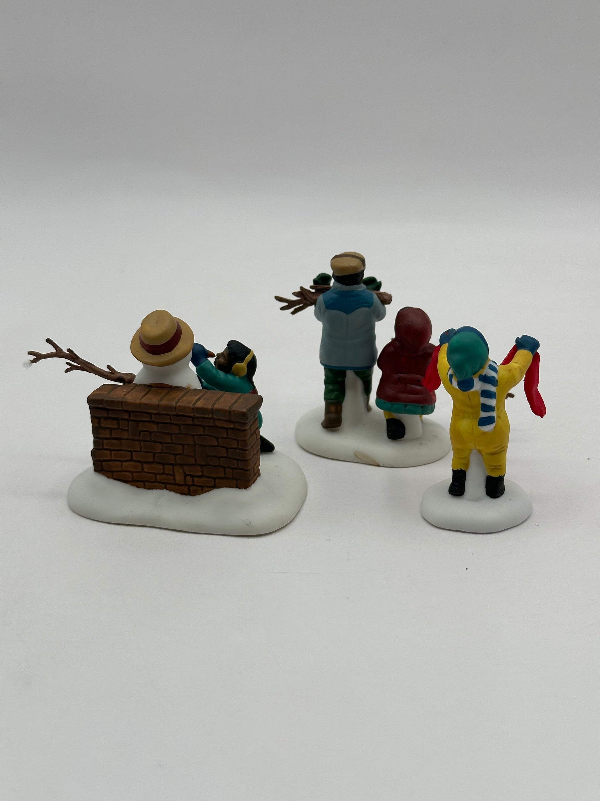 A joyful accessory set featuring children and families building a snowman and enjoying winter fun, perfect for adding life and movement to your Christmas in the City display!