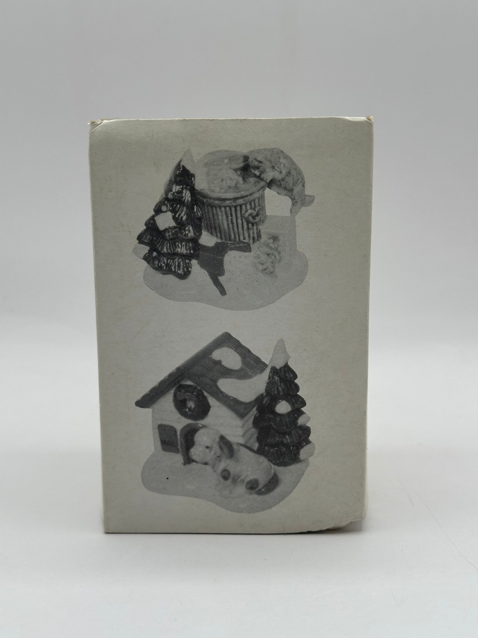 Dept 56 Original Snow Village Doghouse / Cat in Garbage Can
